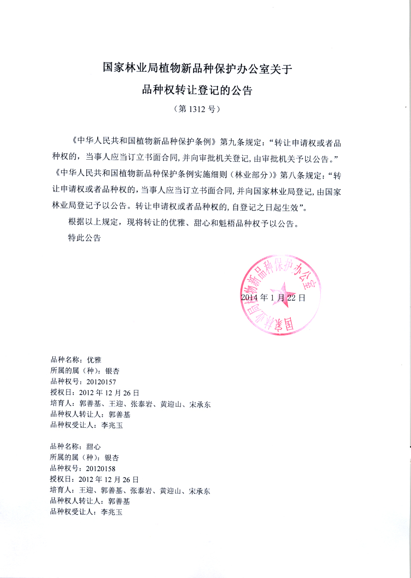 品种权转让登记公告(第1312号)