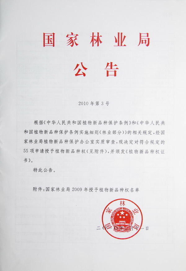 国家林业局2009年授予植物新品种权名单 | ||||||